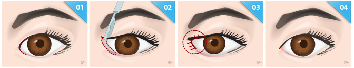 С помощью современных методик производят практически незаметные разрезы на эпикантопластусе, которые располагаются вдоль естественных складок. Также существуют методики, которые позволяют выполнить эпикантопластику век без наружных разрезов и без наложения швов.