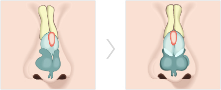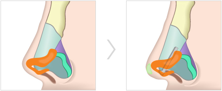 Данный тип операции называется аугментационной ринопластикой, проводится он на низко посаженном затопленном носе, самой распространенной форме носа азиатов. При Аугментационной ринопластике используется имплантат для переносицы, кончик носа поднимается за счет собственных тканей и низкая носовая перегородка поднимается.